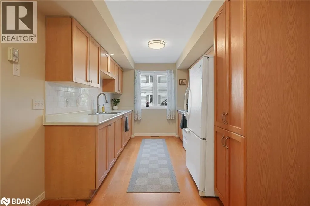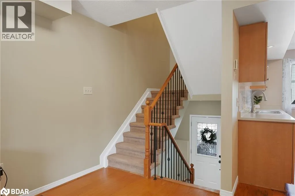 Step into homeownership with this stylish condo townhome located in Barrie's desirable Painswick neighbourhood. Tucked away at the end of a row of townhomes, this unit offers extra privacy and a quiet retreat, nicely set back from the street. Designed for modern living, this bright and airy 3-bedroo...m home features spacious principal rooms, two bathrooms, and fresh decor that's ready for you to move right in. The main living area offers a generously sized kitchen and spacious living/dining combination with a walkout to the backyard. The upper floor offers 2 spacious bedrooms, ample closet space, and a convenient shared 4-piece bathroom. The lower-level features the third bedroom, which offers the flexibility to become the perfect guest room, home office, home gym, or additional living space ideal for the variety today's lifestyles bring. The fully renovated 3-piece bathroom on this level provides a spa-like retreat for anyone with discerning taste. This level also features laundry with a convenient utility sink and storage. Located in a quiet complex of just 6 units, you'll appreciate the sense of community without sacrificing peace and comfort. Find yourself within walking distance to shopping, restaurants, and everyday conveniences, with quick access to public transit and the GO Train for stress-free commuting. With affordable monthly fees covering grounds maintenance, snow removal, roof replacement, and more, plus low property taxes, this is a smart and attainable choice for first-time buyers or those looking to build equity while enjoying the freedom of a home that truly fits any lifestyle. Book your showing today! (id:10452)